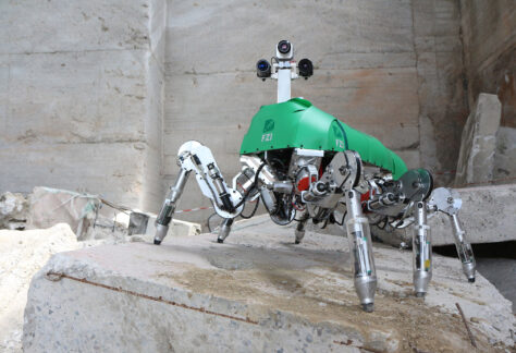 Wie sieht unsere Welt in fünf Jahren aus? Wie gestalten Wissenschaft und Wirtschaft diese Entwicklung? Eröffnung der TECHNOarena in Mannheim mit FZI-Roboter Spot.